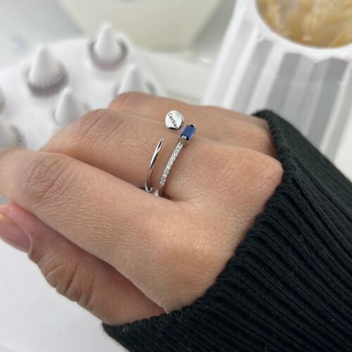 La bague Double Clou séduit par ses deux anneaux superposés en argent, créant un effet graphique et moderne. Le premier anneau met en valeur une pierre bleue profonde, tandis que le second anneau, en forme de clou épuré, apporte un design audacieux et minimaliste, créant un contraste élégant et contemporain qui sublime la main avec caractère.