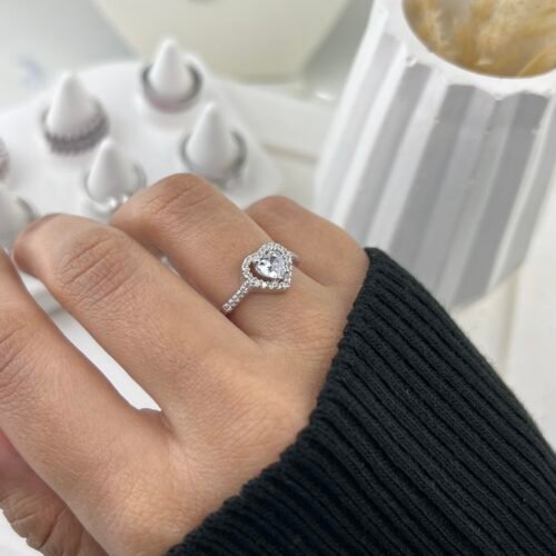 La bague Pandora Blanc séduit par son motif cœur central délicatement pavé de cristaux blancs scintillants, sublimé par un anneau en argent élégamment orné de pierres étincelantes. Le cœur lumineux capte la lumière avec brillance, tandis que les cristaux pavés sur les épaules de l’anneau créent un chemin étincelant raffiné, offrant un bijou à la fois romantique, lumineux et sophistiqué.