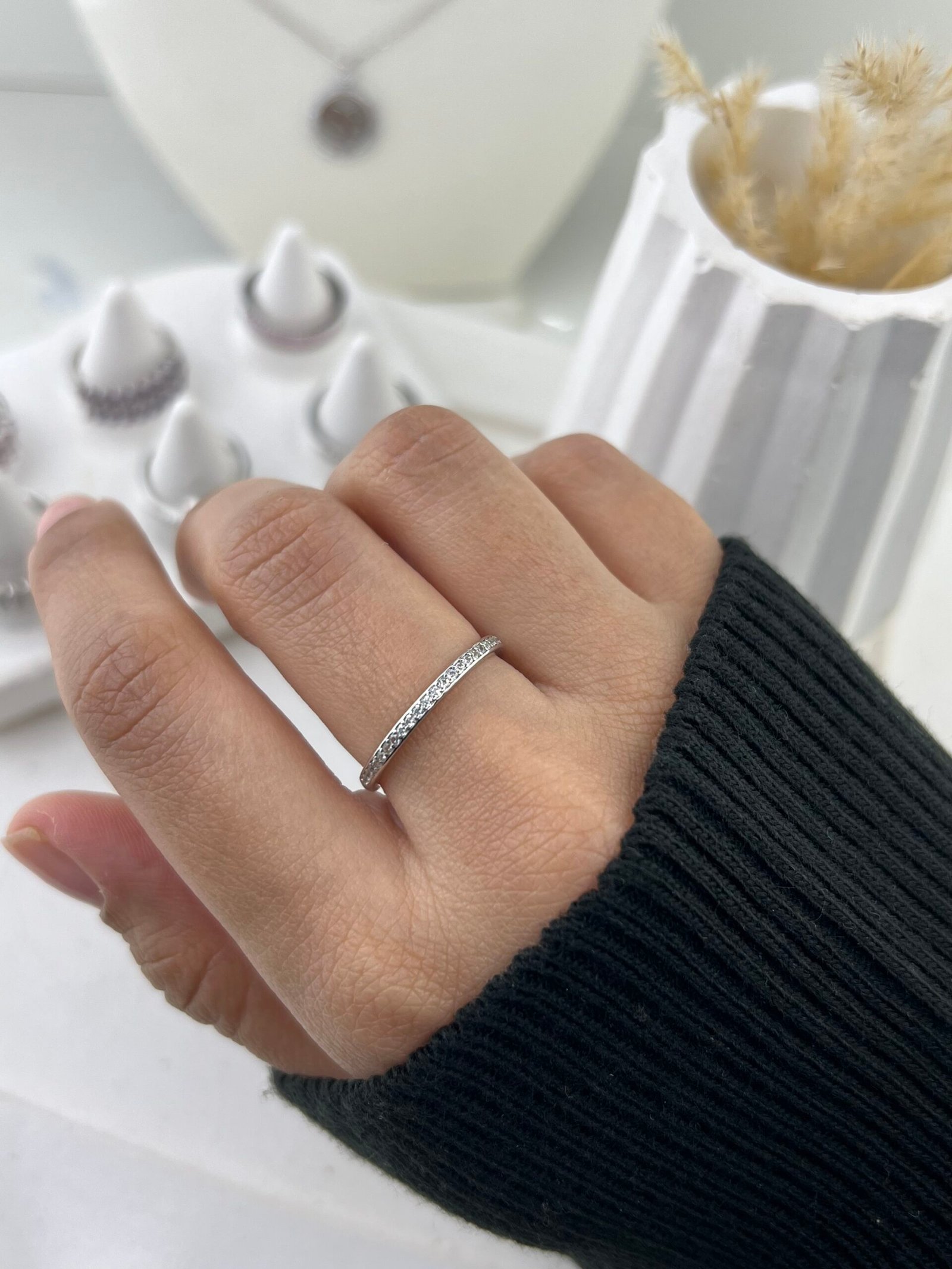 La bague Solo séduit par son design épuré d’alliance fine, délicatement pavée de cristaux scintillants sur toute sa circonférence en argent. Sa ligne continue de pierres crée un éclat subtil et harmonieux, idéal pour un style minimaliste, chic et intemporel.