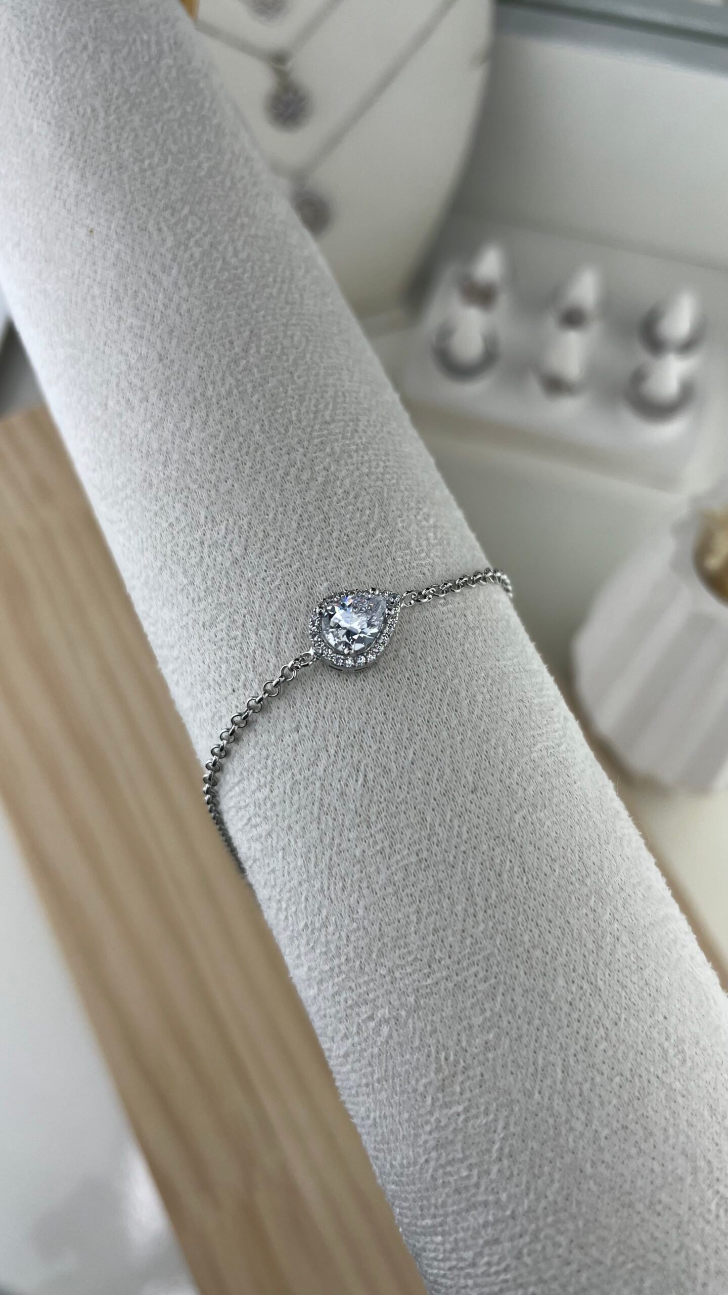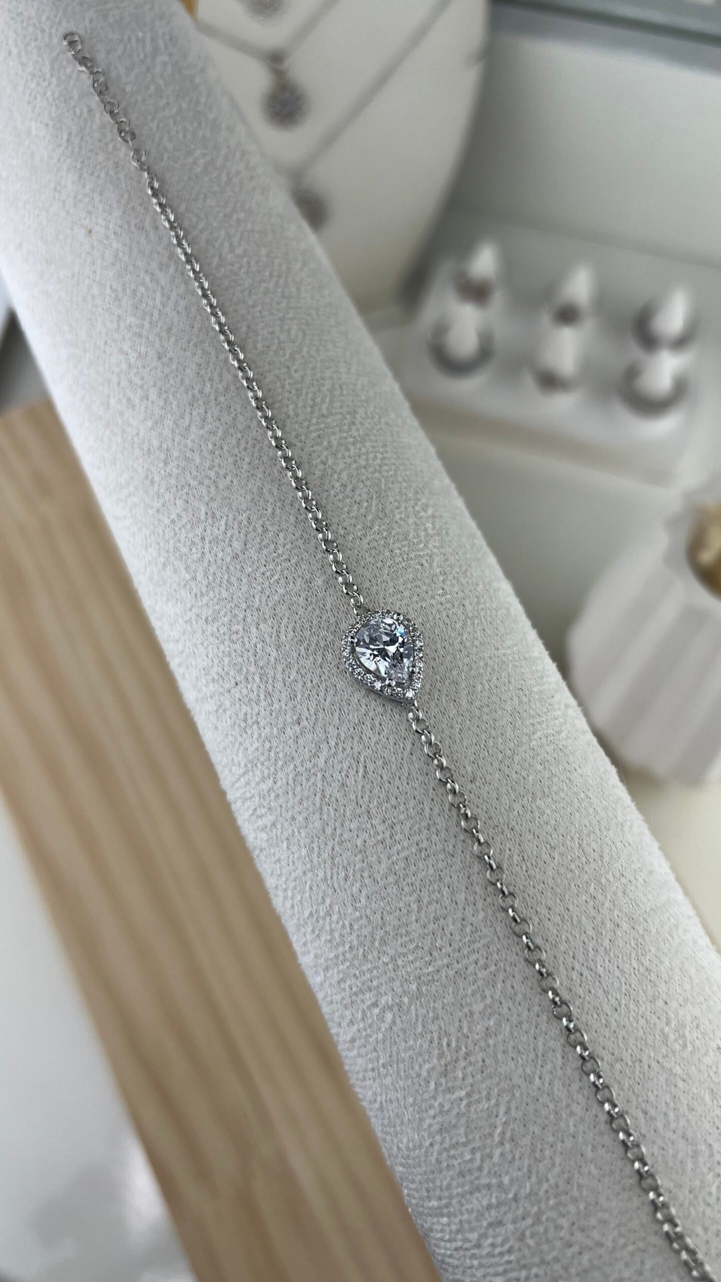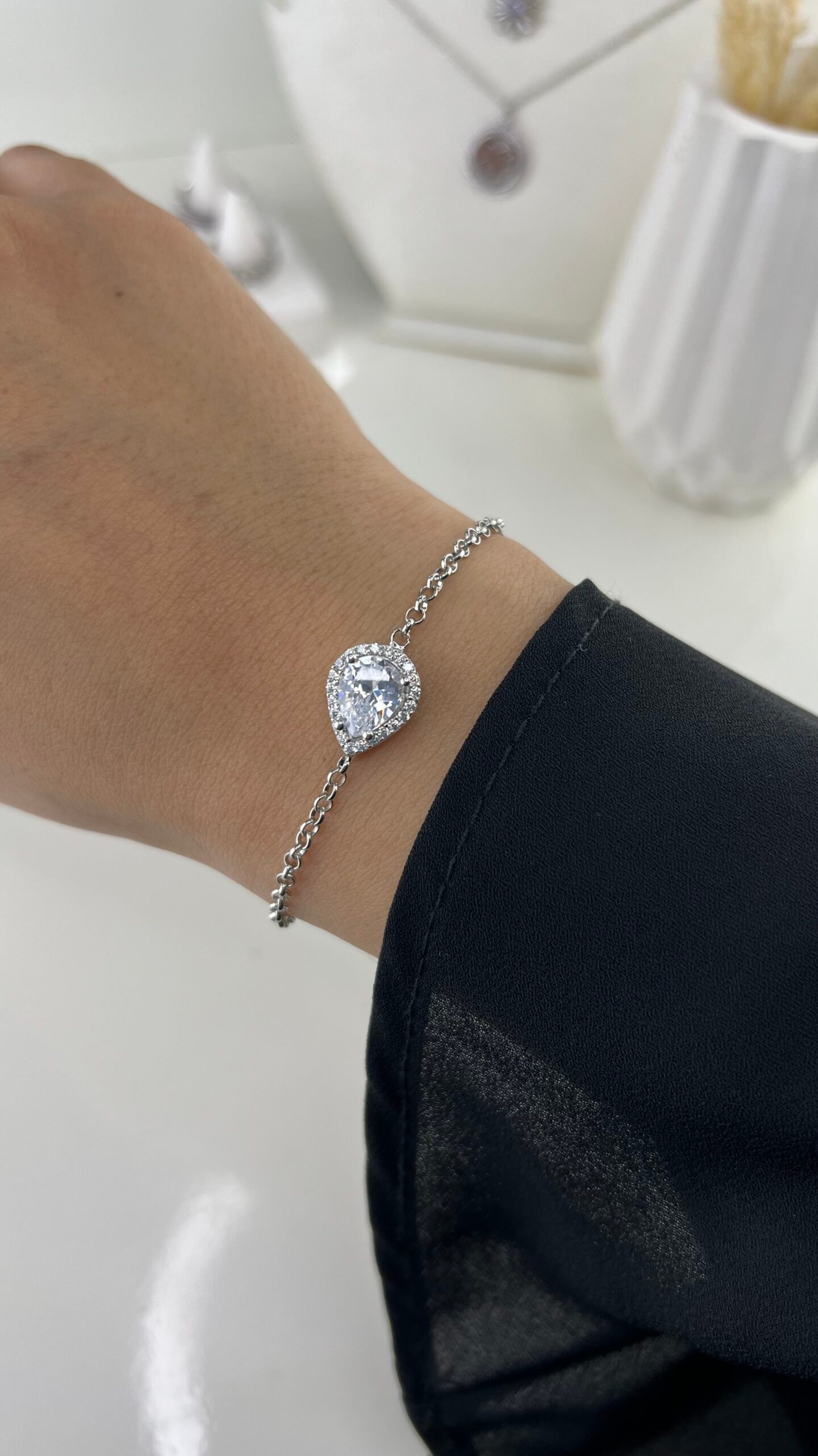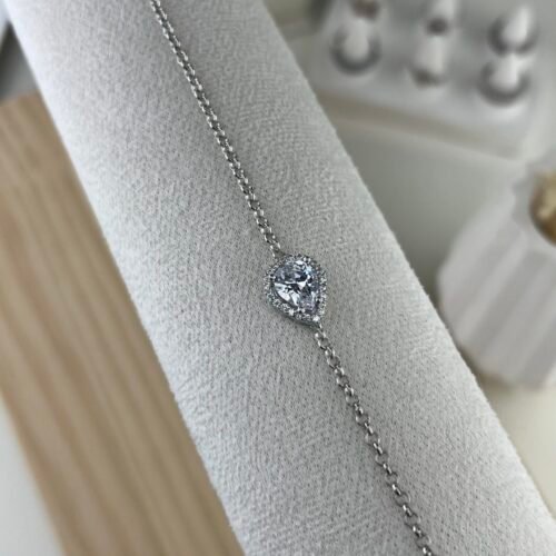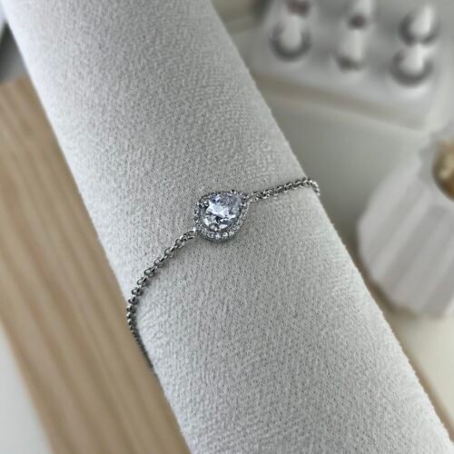 Le bracelet Nayla séduit par son charm rosace délicatement pavé de pierres blanches, disposées en forme de fleur sur une chaîne fine en argent. Ce motif floral épuré capte la lumière avec subtilité, créant un bijou à la fois lumineux, féminin et raffiné, parfait pour sublimer le poignet avec élégance.