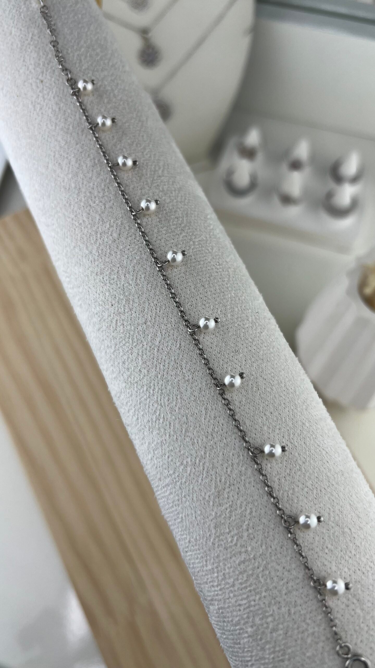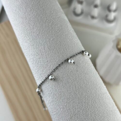 Le bracelet Perle séduit par ses petites perles argentées, délicatement réparties le long d’une chaîne fine en argent. Ce design minimaliste et sophistiqué crée un bijou aérien et lumineux, où chaque perle capte subtilement la lumière, apportant une touche de délicatesse et de féminité à votre style.