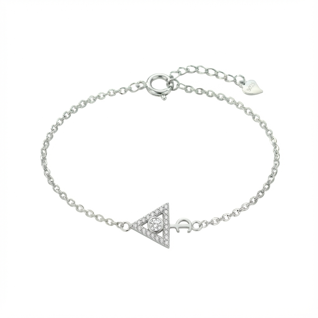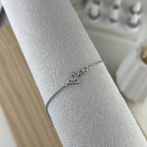 Le bracelet Tazerzit séduit par son charm délicatement pavé de cristaux scintillants, monté sur une chaîne fine en argent. Ce bijou moderne et raffiné capte la lumière avec subtilité grâce à un travail d’orfèvrerie soigné, pour un rendu à la fois chic et contemporain.