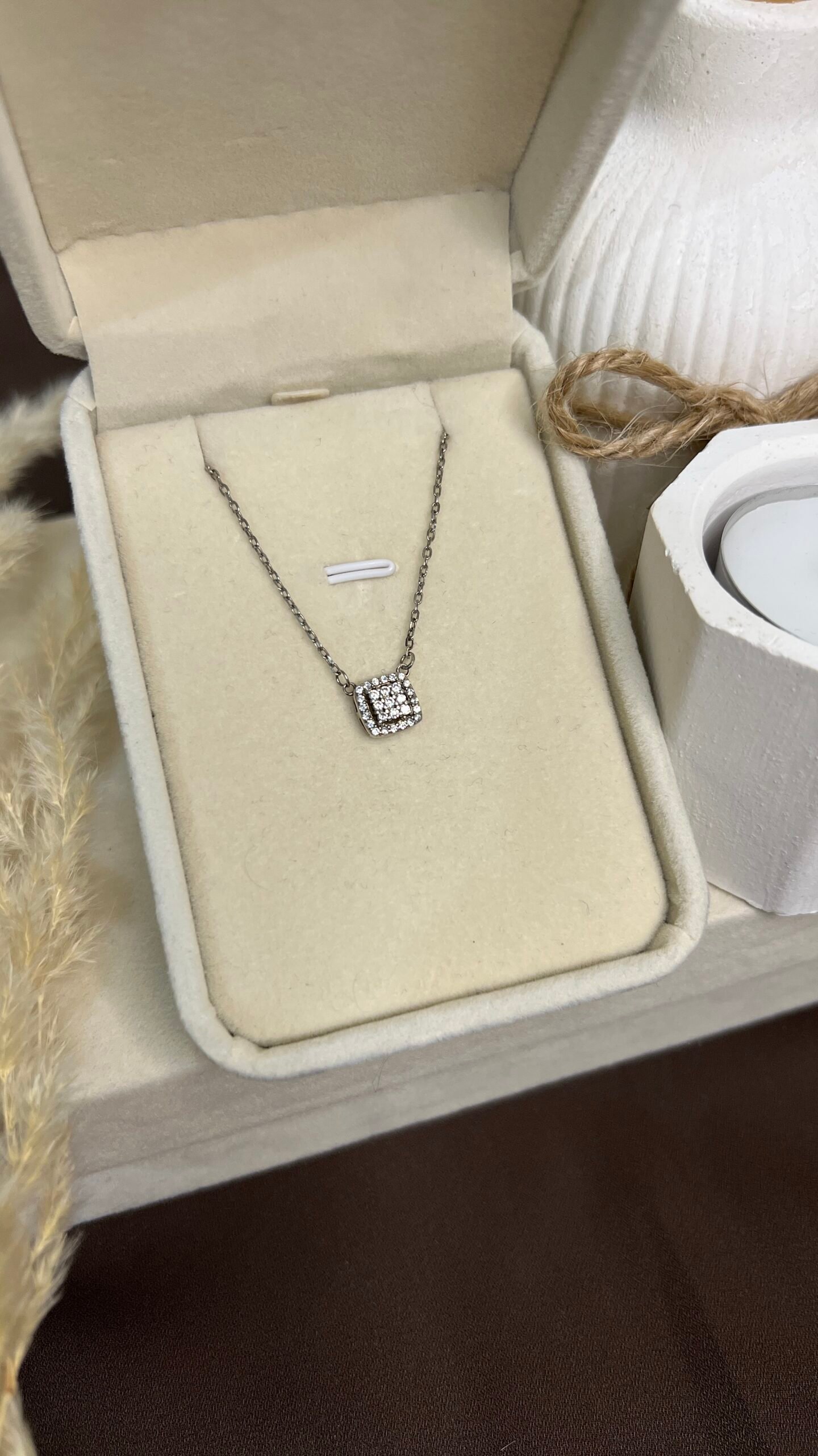 Le collier Celestia séduit par son pendentif en forme de carré, décoré de pierres brillantes qui captent la lumière avec élégance. Cette création délicate allie modernité et raffinement, parfaite pour sublimer vos tenues au quotidien ou lors d’occasions spéciales.